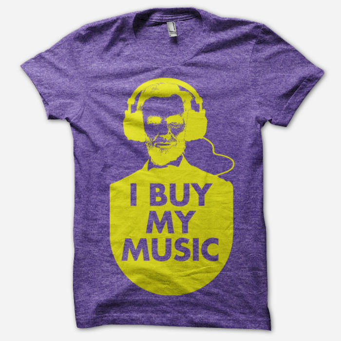 10% of all "I Buy My Music" merchandise benefits music education!The Abe Lincoln "I Buy My Music" t-shirt that comes with "The Conspirator Two Disc Limited Edition" is, well, a "Limited Edition". But we've had so many requests for another version, so here it is - The "I Buy My Music" Honest Abe Purple & Gold Edition, screen printed on high quality American Apparel by Hello Merch! Includes a free download of the track "Barranquilla" from "The Mechanic - Assassin's Edition".
